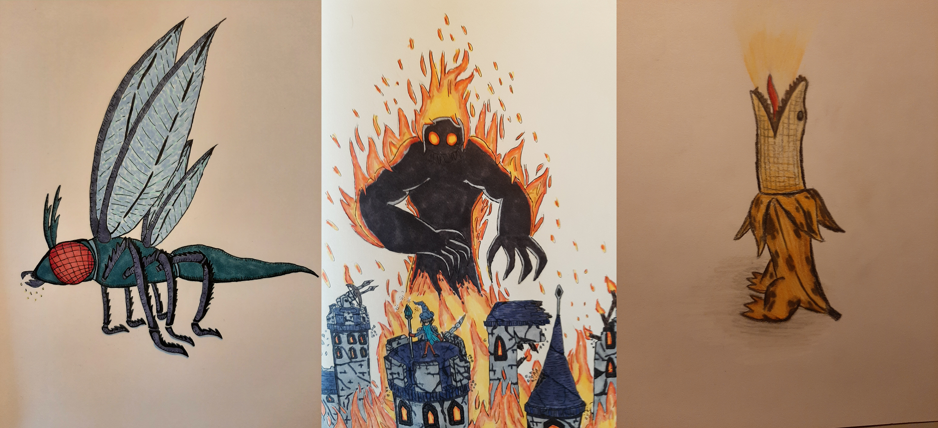 Insect illustratie, Brandend kasteel illustratie, Banaan dino illustratie